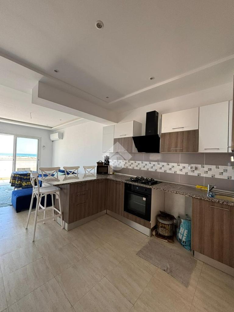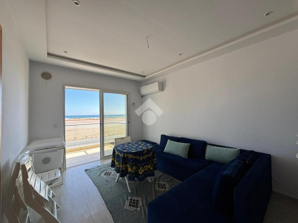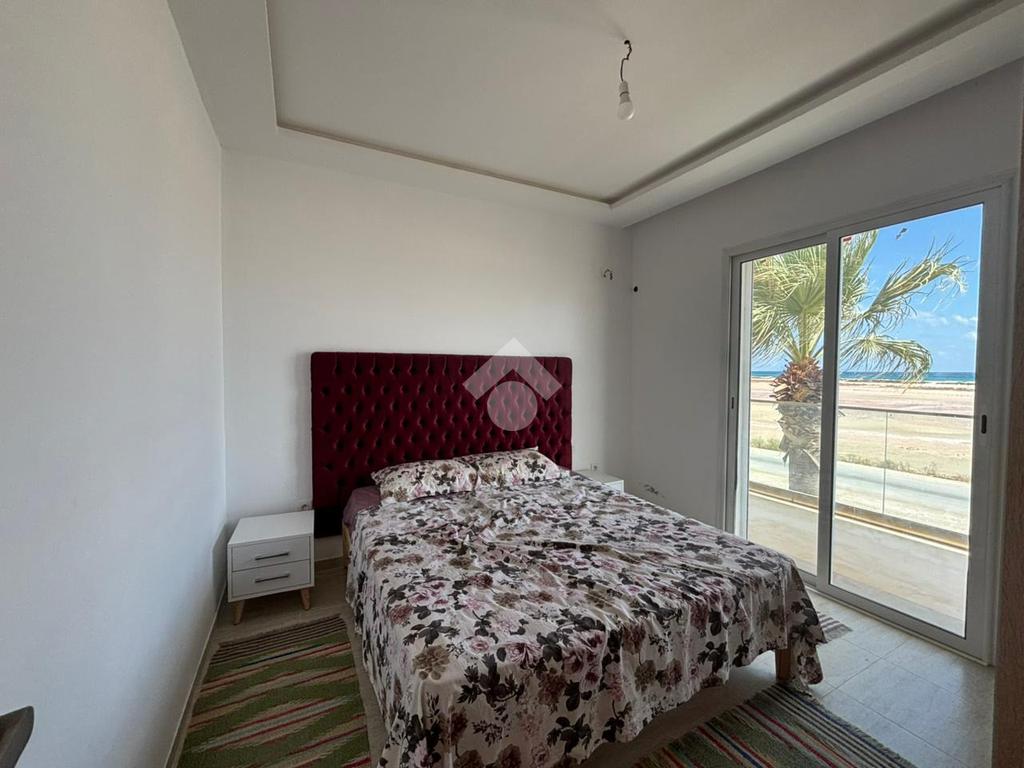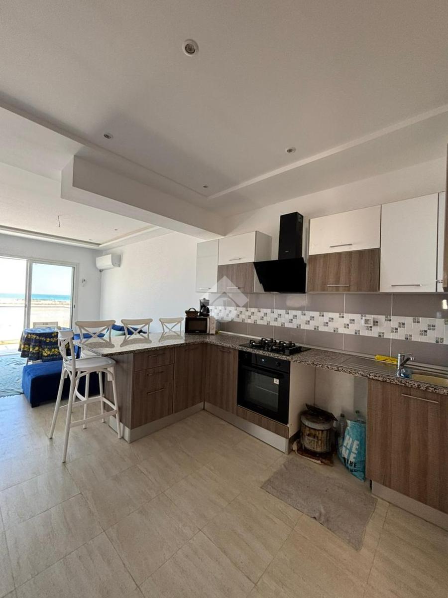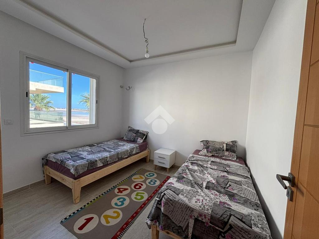 Cet appartement S+3, situé en première ligne de la plage à Baghdadi, se trouve au premier étage d’une résidence sécurisée avec ascenseur.